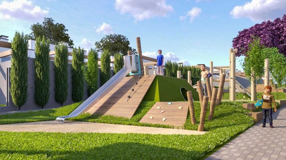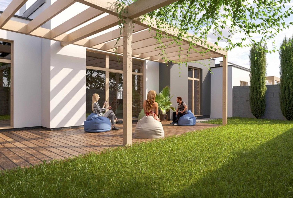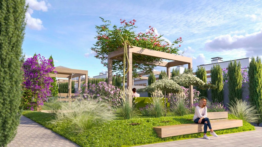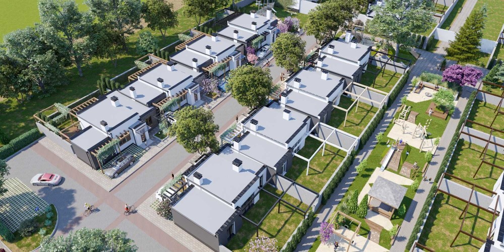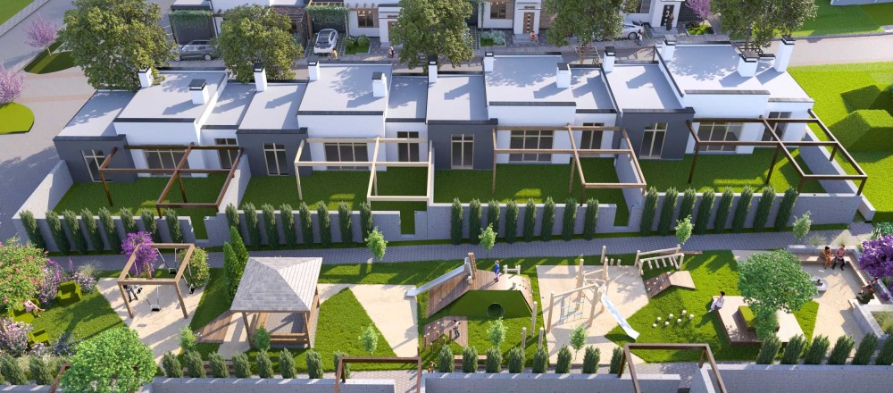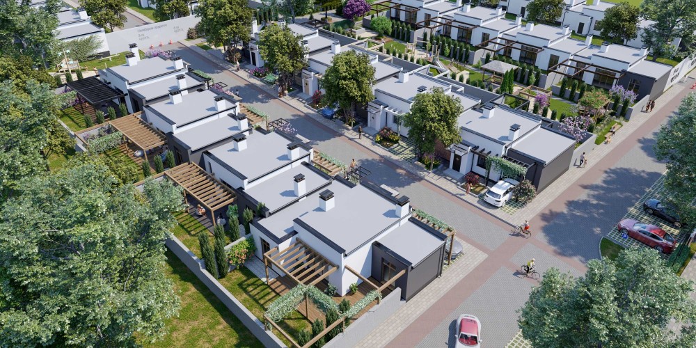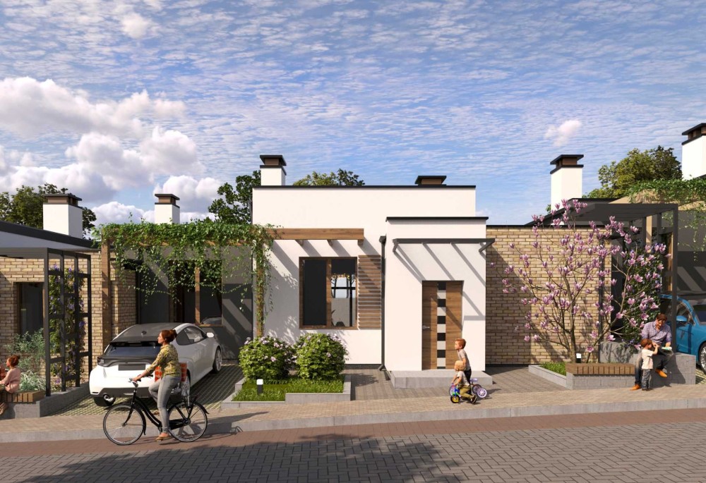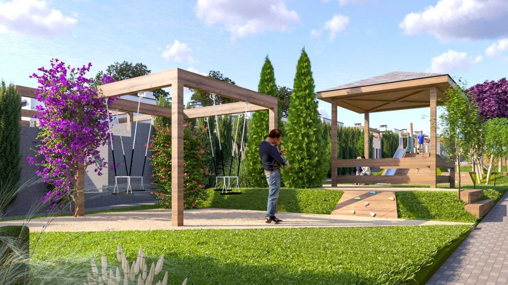 Закритий комплекс одноповерхових котеджів із власною парковою зоною, розважальними та спортивними майданчиками, зонами відпочинку та головна особливість - відкритий басейн!