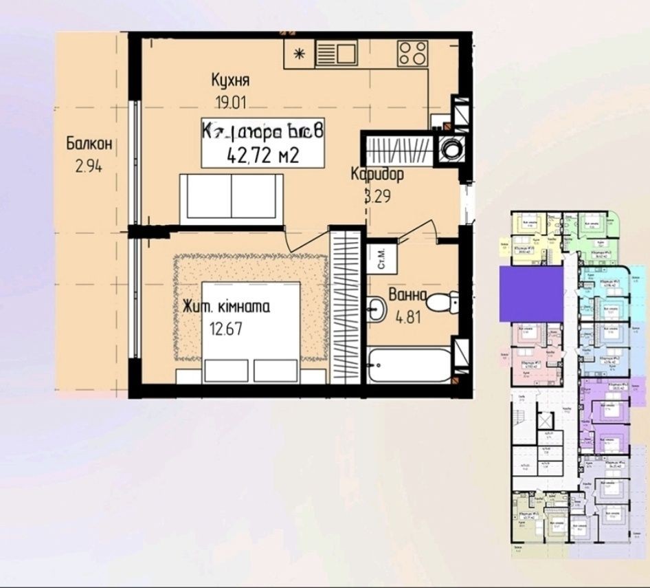 • Общая площадь 42.72 м2