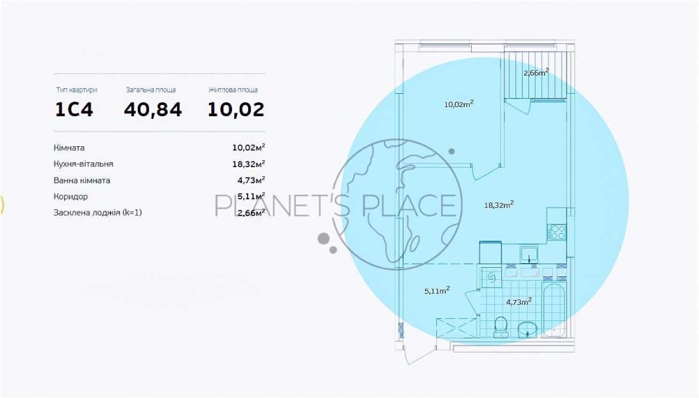 Загальна площа: 41м2