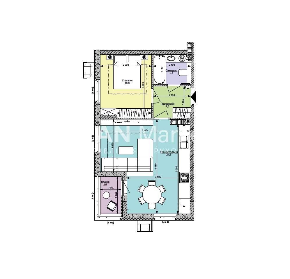 Кухня - вітальня: 24,6 м²