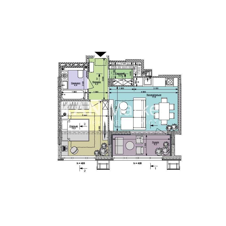 Кухня - вітальня: 17,9 м²