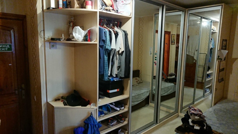 Вбудована кухня, великий шкаф купе в вітальні, шкаф в кімнаті, стіл. Диван великий , диван дитячий.
