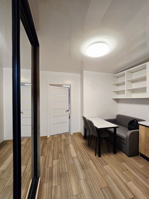 Кімната 18 м², кухня-студія 11 м² з шафою-купе, санвузол 5 м² з кладовою.