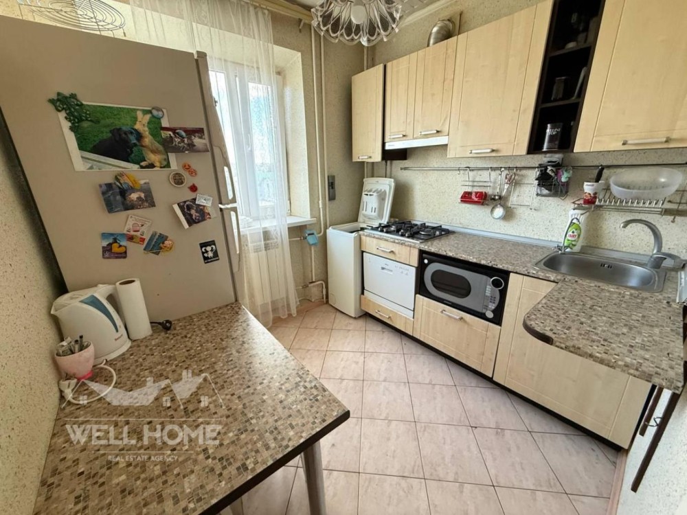 Квартира продається з меблями та технікою: холодильник, газова варильна поверхня, мікрохвильова піч, посудомийна машина, пральна машина, витяжка, бойлер — усе в чудовому стані.