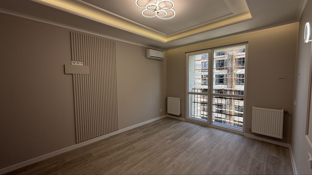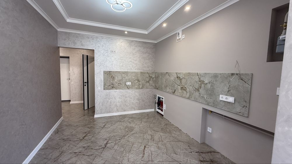 1 кімнатна квартира з добротним ремонтом, ідеальним плануванням, кухня-студія, простора кімната з балконом, гардеробна кімната, встановлено кондиціонер, підігрів підлоги де плитка, ремонт робили для себе стіни всі замінено штукатурку та виведено ідеально рівно. В дворі паркомісця, дитячий майданчик.