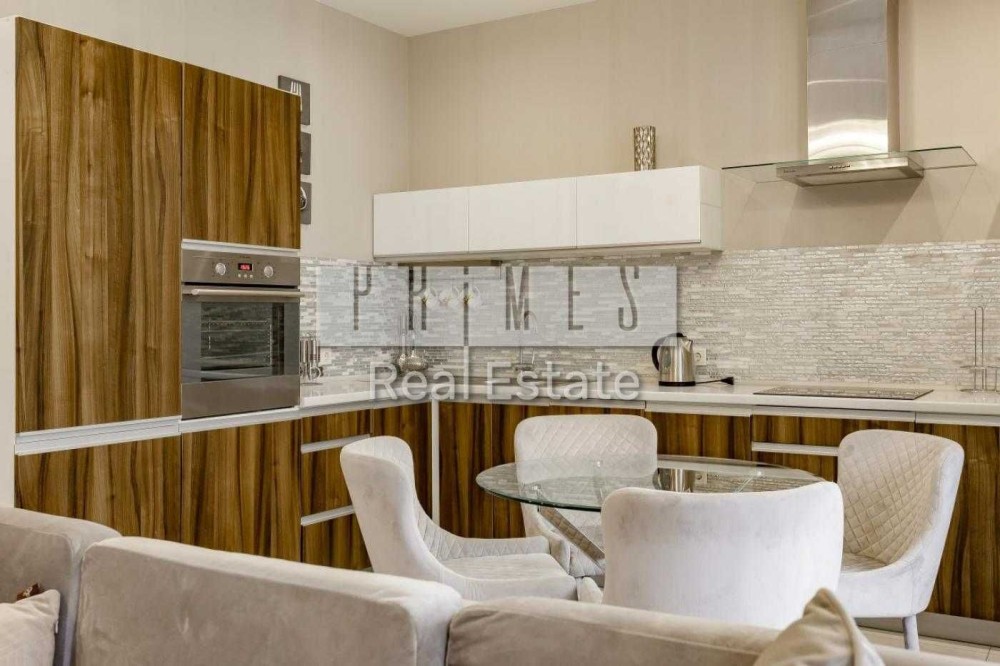 - Компактна (55м2) та багатофункціональна квартира з правильним плануванням, що включає об'єднану з вітальною кухню, зоновану спальну зону з великою двоспальною кроватью, а також поєднаний санвузол з ванною.