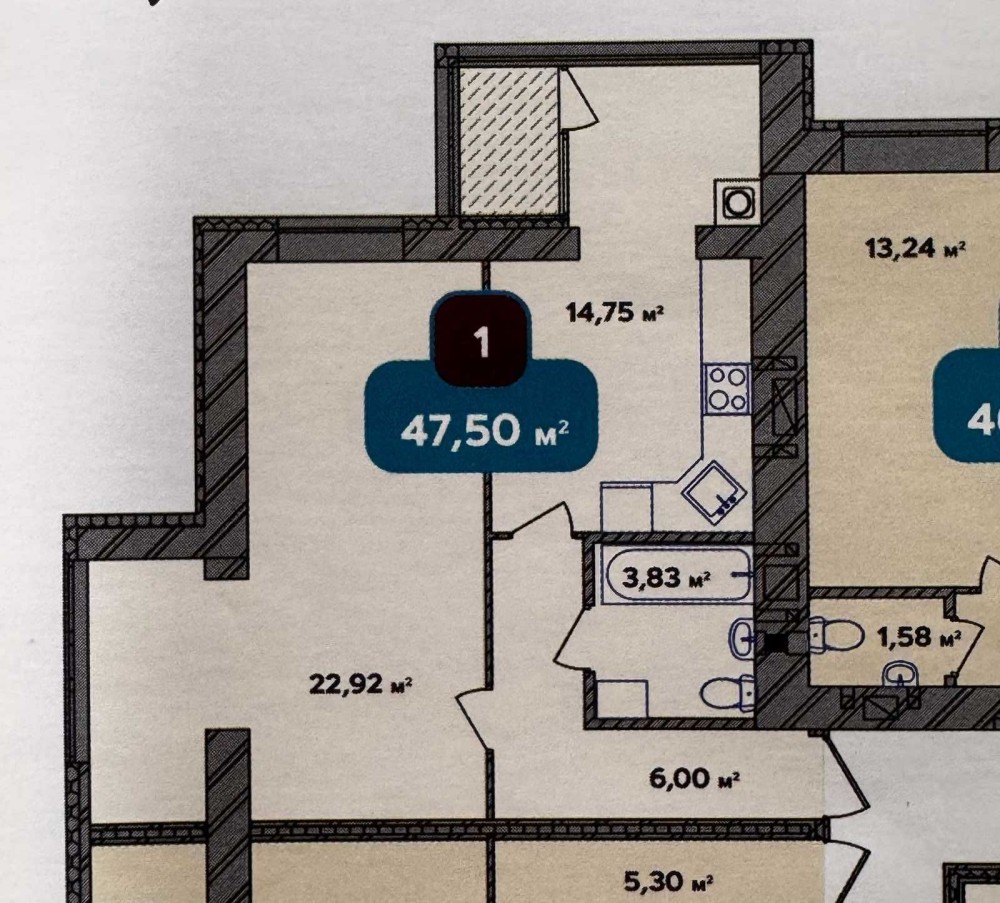• Общая площадь 47.5 м2