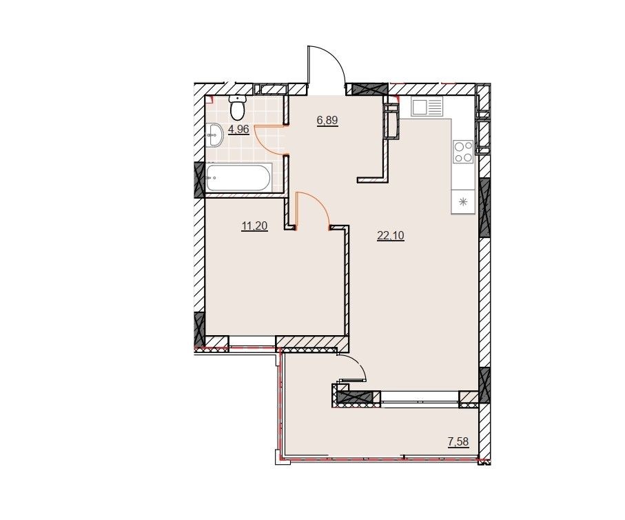 • Площадь кухни 22.1 м2