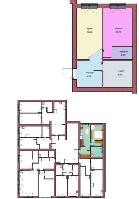 Планування : кухня, спальня, коридор, гардероб, санвузол.