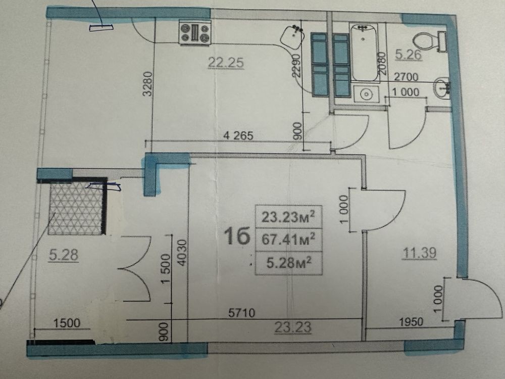 • Площадь кухни 22.2 м2
