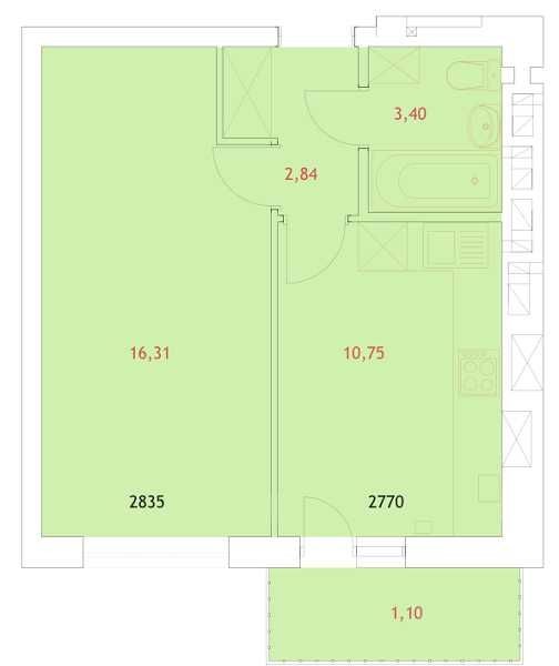 • Общая площадь 35 м2