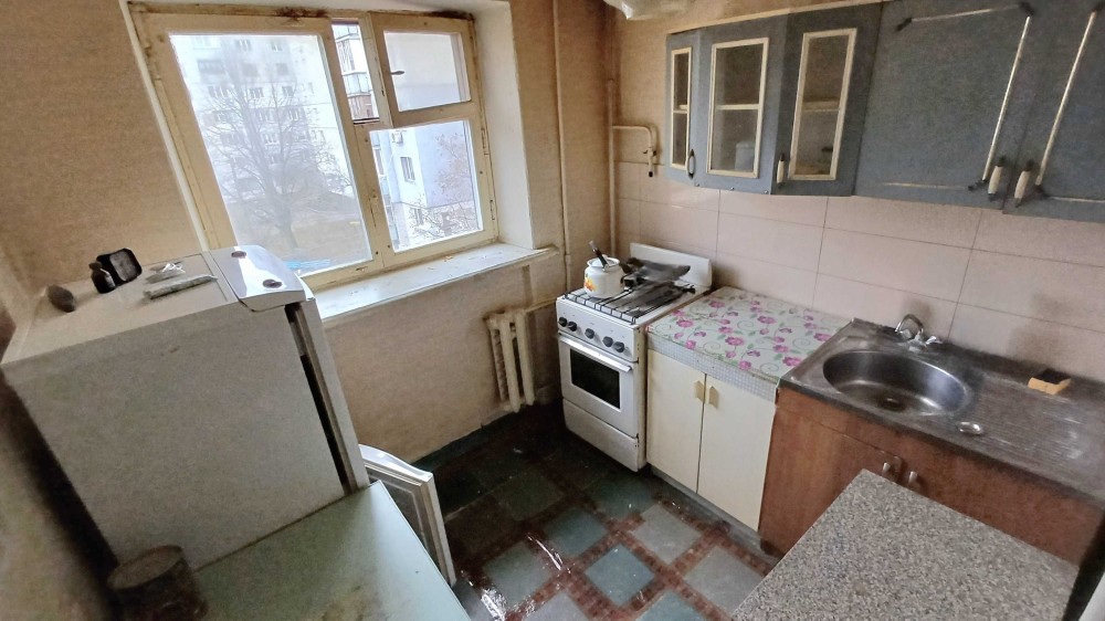 Квартира простора 33 м2, тепла та світла, кімната 18 м2 з нишею, стан - під ремонт, сан вузол сумісний,поряд є містка комора, балкон засклен,лічільники на воду,світло та тепло ( будинковий)