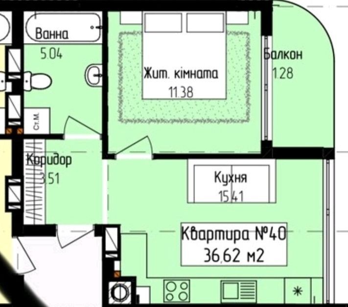 Пропонується до продажу простора квартира 36,62кв.м у сучасному житловому комплексі з гектаром власної паркової зони та басейном для мешканців.