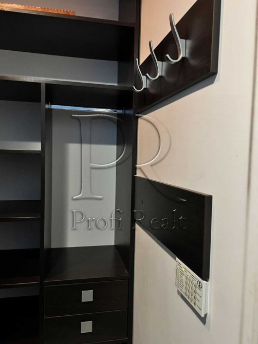 - вбудована кухня, холодильник, газова плита, електродуховка, пральна машина, вбудована гардеробна шафа, диван.