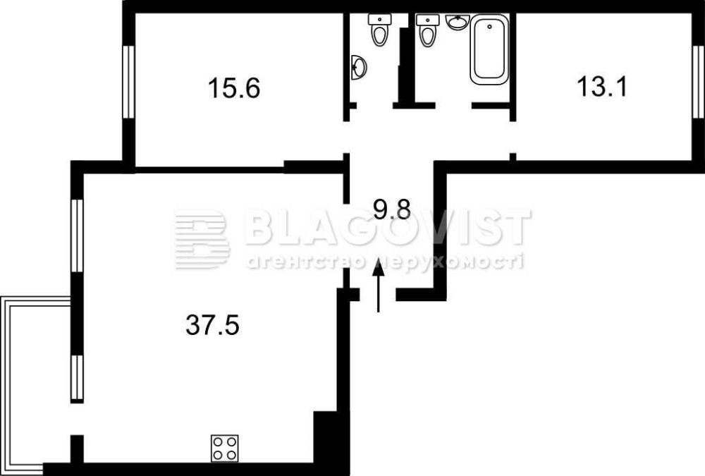 • Площадь кухни 37.5 м2