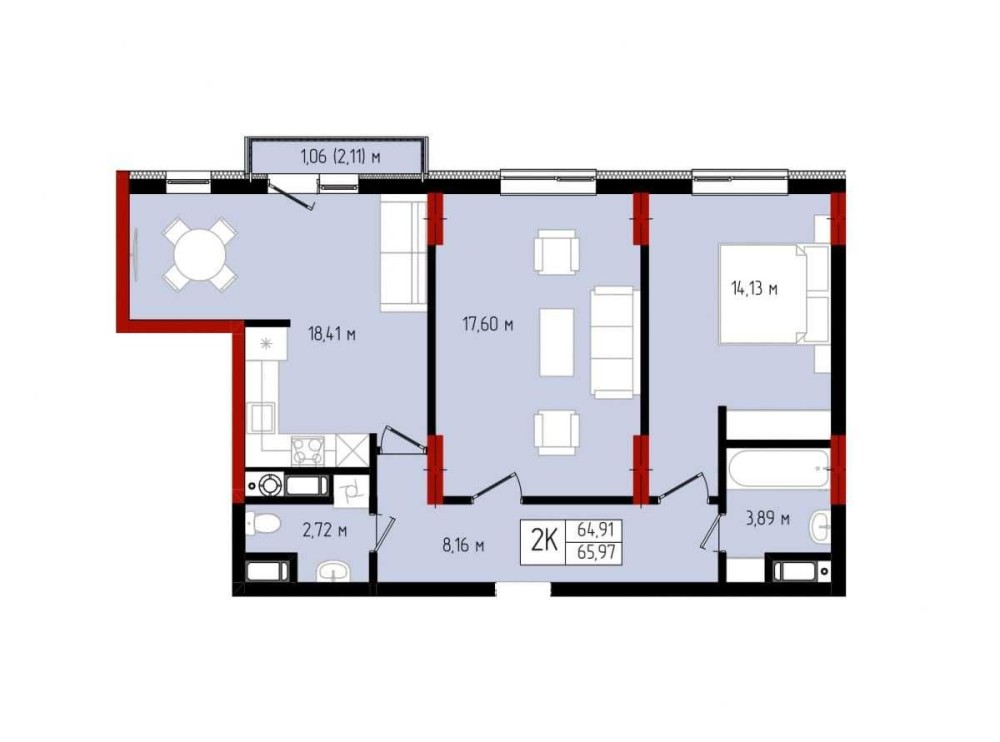 • Двухкомнатная