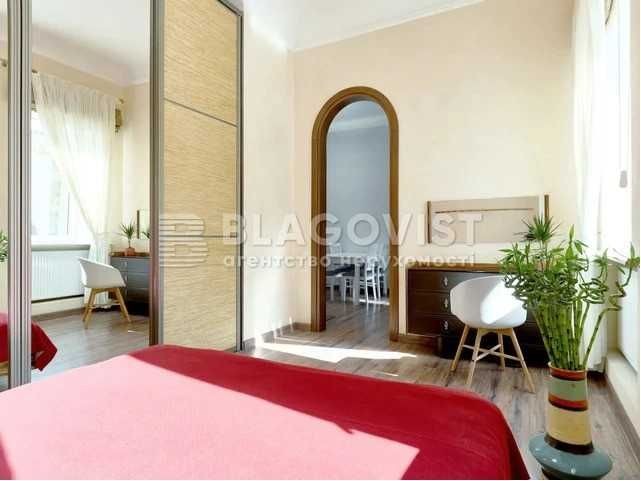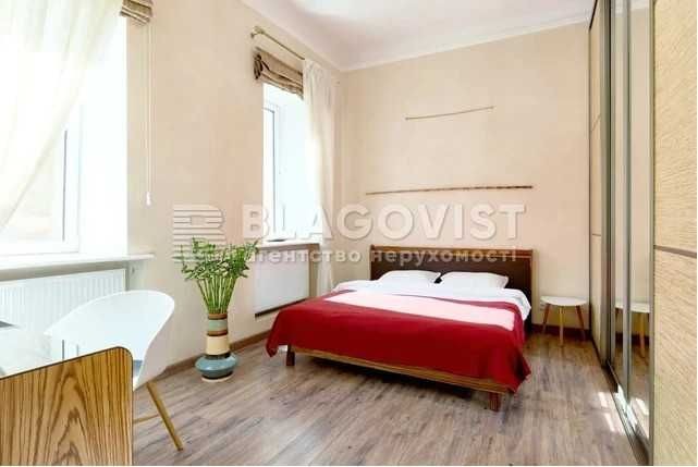 Київ, вул. Межигірська,19а. Царський будинок. Квартира простора з функціональним плануванням, зроблено дизайнерський ремонт. Квартира облаштована необхідними меблями та побутовою технікою. Затишна квартира має дві окремі спальні, вітальню з каміном, кухню, місця для роботи, багато місця для зберігання речей. Стеля -3.45 м. Під`їзд з ремонтом. Поруч Житній ринок, Андріївський узвіз, Києво-Могилянська академія, бутіки, атмосферні кафе, ресторани. Метро Контрактова площа - 2 хв.пішки.