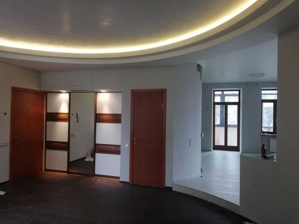 2-кімн.квартира на 5-му поверсі 5-поверх.будинку. Загальна площа квартири - 138,8 м2, жила - 37.8 м2, кухні - 39 м2. Площа холу-гостинної - 35,4 м2. Висота потолків - 3,1 м. Два санвузли, лоджія та балкон. Квартира 4-стороння.