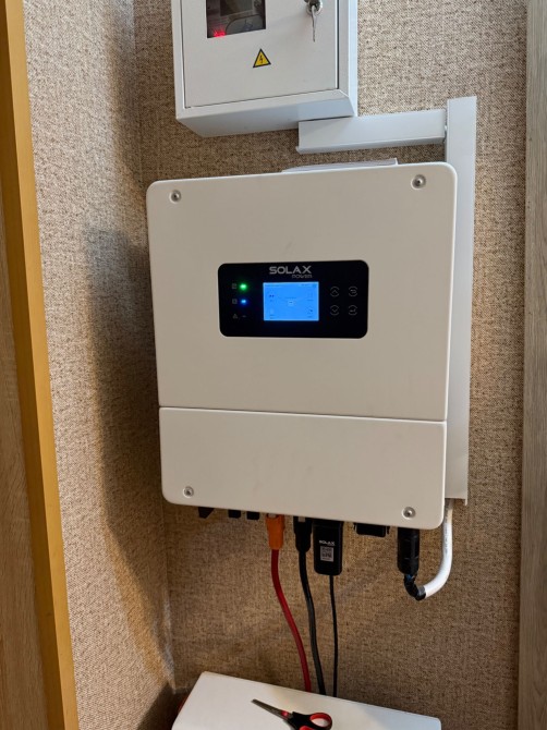 Захист від блекаутів: автономне живлення від інвертора (гібридний Solax 6 кВт), з акумулятором 5,3 кВт Solax power, гарантія ще на 9 років. 22 години автономії.