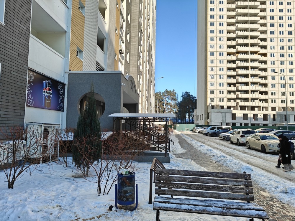 15 хвилин пішки уздовж мальовничих сосен парку Партизанської слави до метро Червоний хутір.