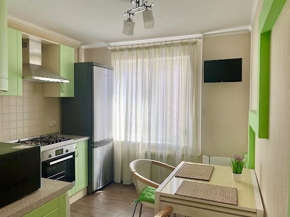Квартира з капітальним ремонтом, не потребує жодних вкладень. Зручне планування: вітальня, спальня, кухня, роздільний санвузол, велика лоджія. Повністю мебльована та оснащена сучасною технікою – усе входить у вартість.