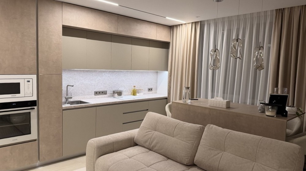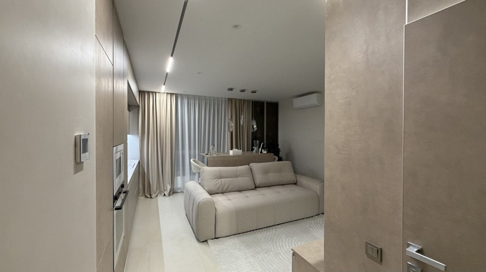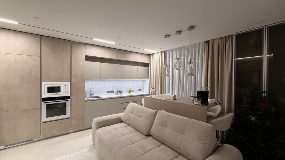Квартира повністю укомплектована вбудованою технікою та меблями й готова до комфортного проживання. Функціональне планування: простора кухня-вітальня, дві окремі спальні, гардеробна кімната, два санвузли.
