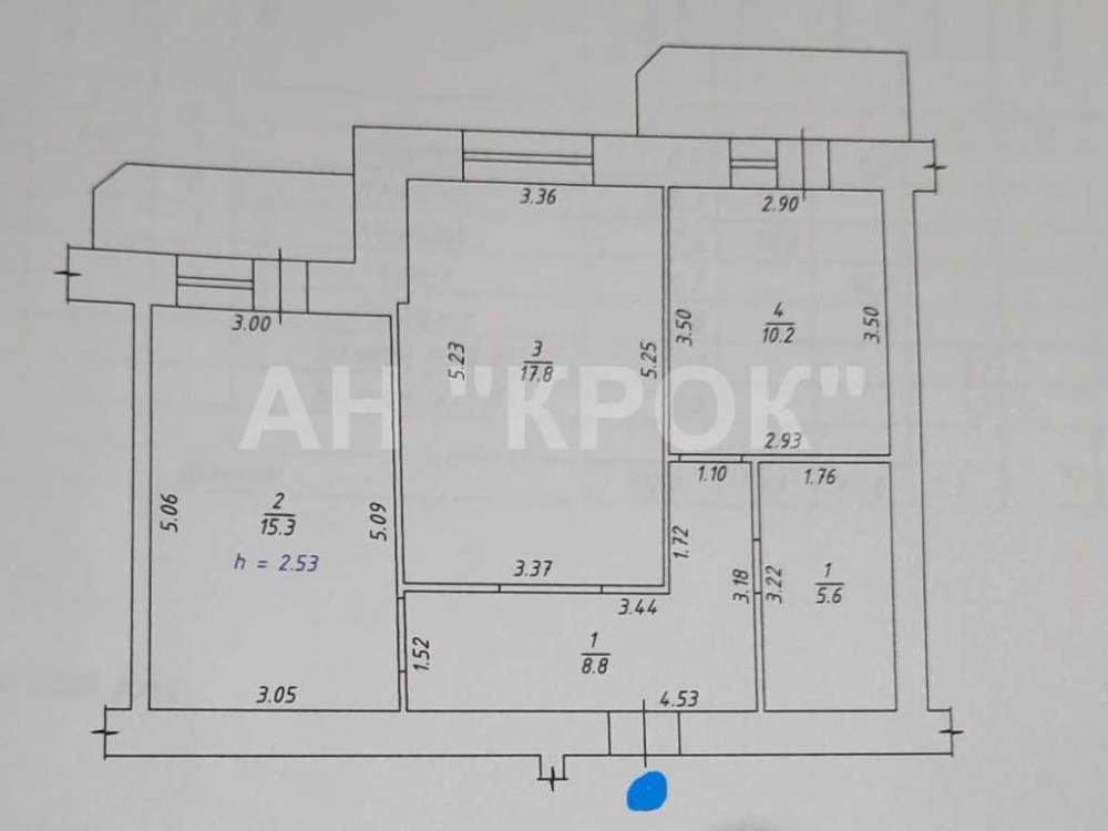 Загальна площа квартири 60 м2, кухня 10 м2