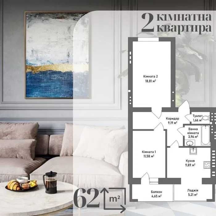 - Площа 65м2