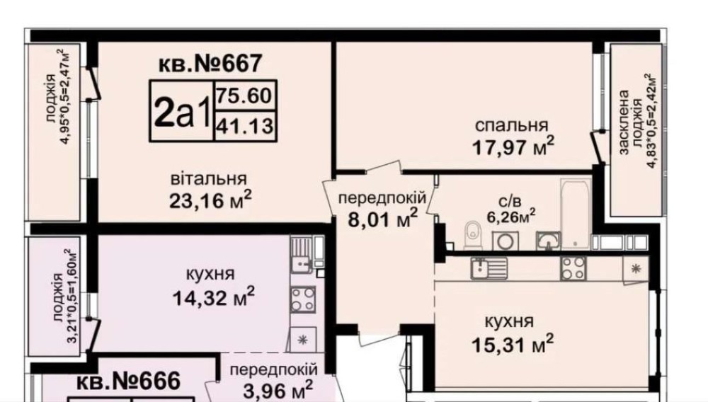 • Общая площадь 76 м2