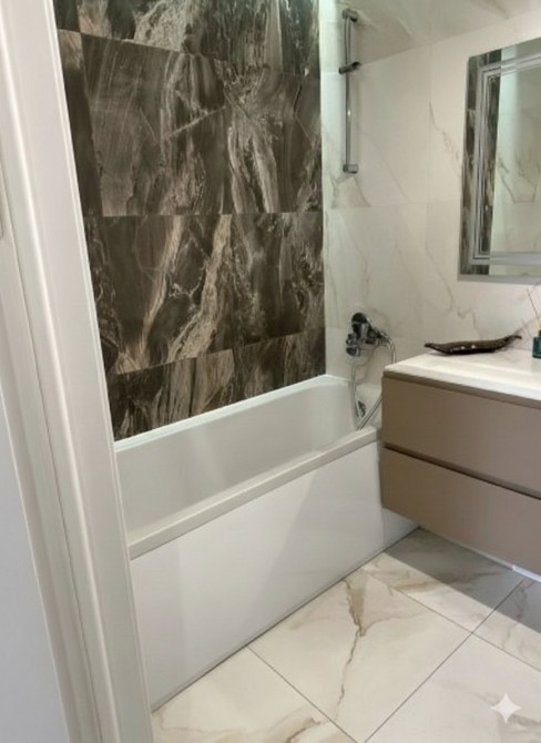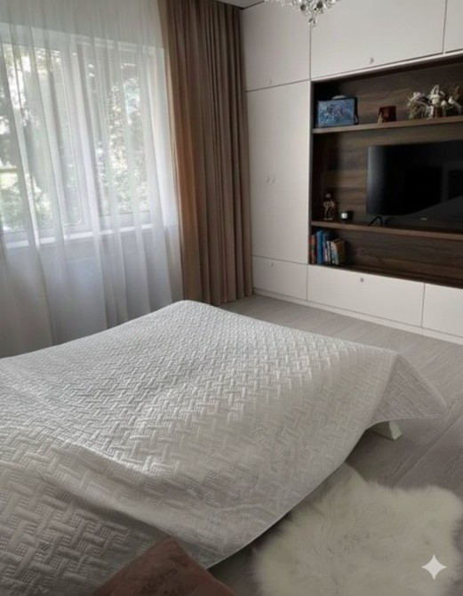 Є дві повноцінні спальні з меблями, кухня з диваном та велика простора ванна кімната. Поряд із будинком знаходиться дитячий садок, школа та дитяча музична школа. Висота стелі 2.60 м