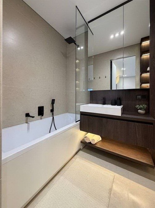 Планування передбачає простору кухню-вітальню, дві роздільні кімнати, санвузол з ванною. В квартирі є все необхідне для комфортного життя: варильна поверхня та духова шафа, посудомийна машина, пральна та сушильна машини, бойлер, кондиціонер, телевізор, підігрів підлоги, багато режимів освітлення тощо. Квартира неймовірна затишна та світла, в ремонті все продумане до дрібниць. В ремонті використовувались якісні та натуральні матеріали, техніка - від провідних брендів.