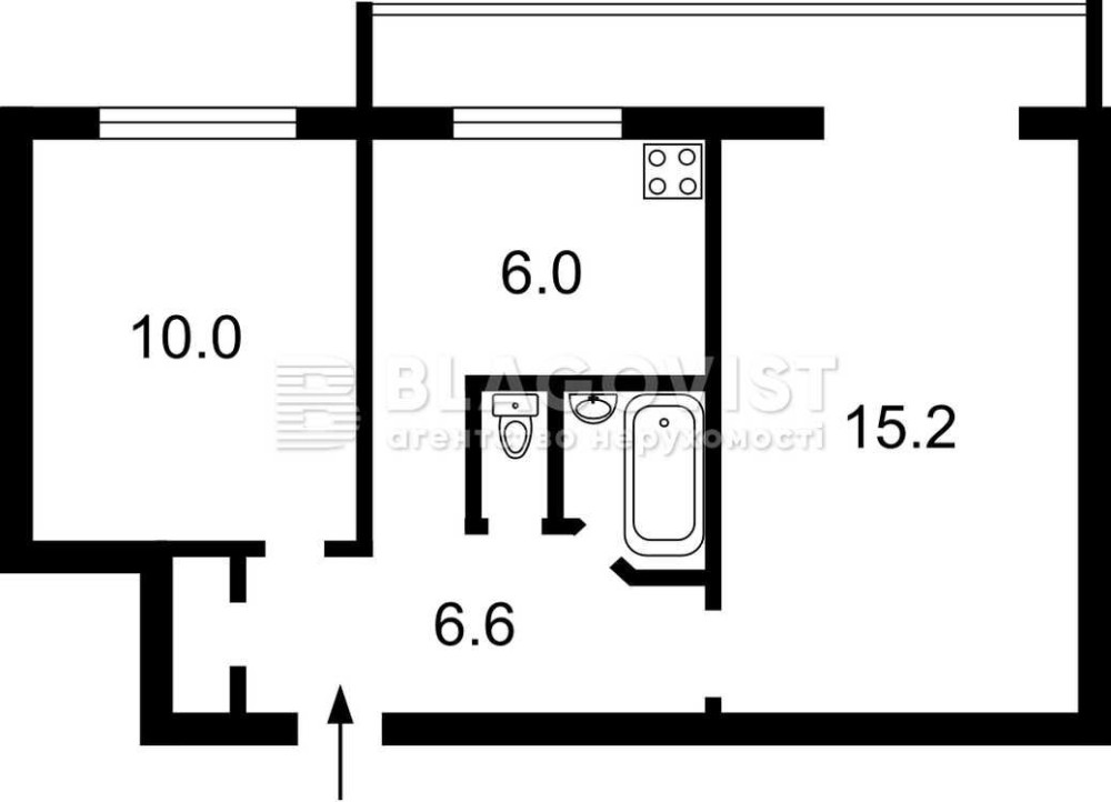 • Общая площадь 43.3 м2