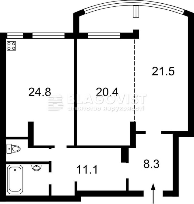 • Площадь кухни 21.5 м2