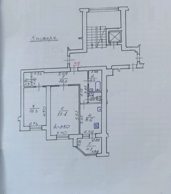 Продається 2-кімнатна квартира без ремонту — 5 поверх