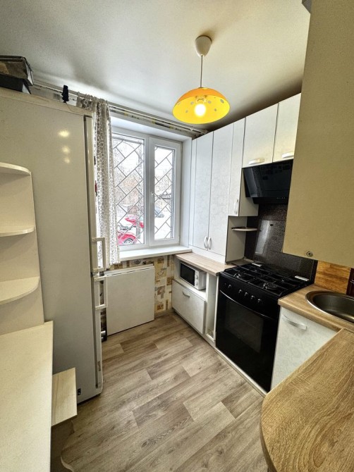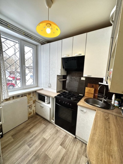 Меблі індивідуального виготовлення, враховуючи параметри квартири, що дало можливість максимально використати площу. Все залишається новому власнику.