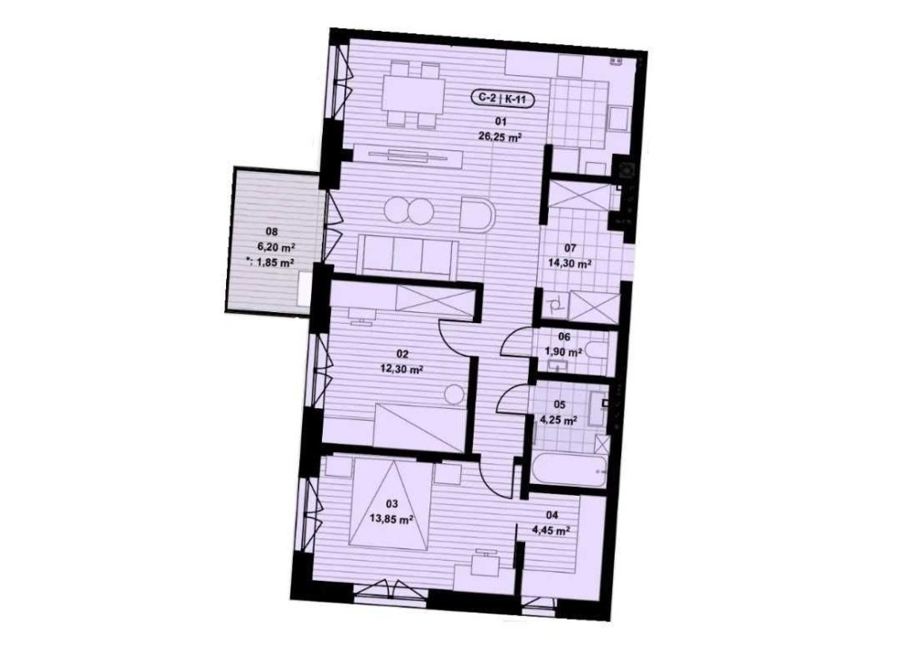 • Трехкомнатная