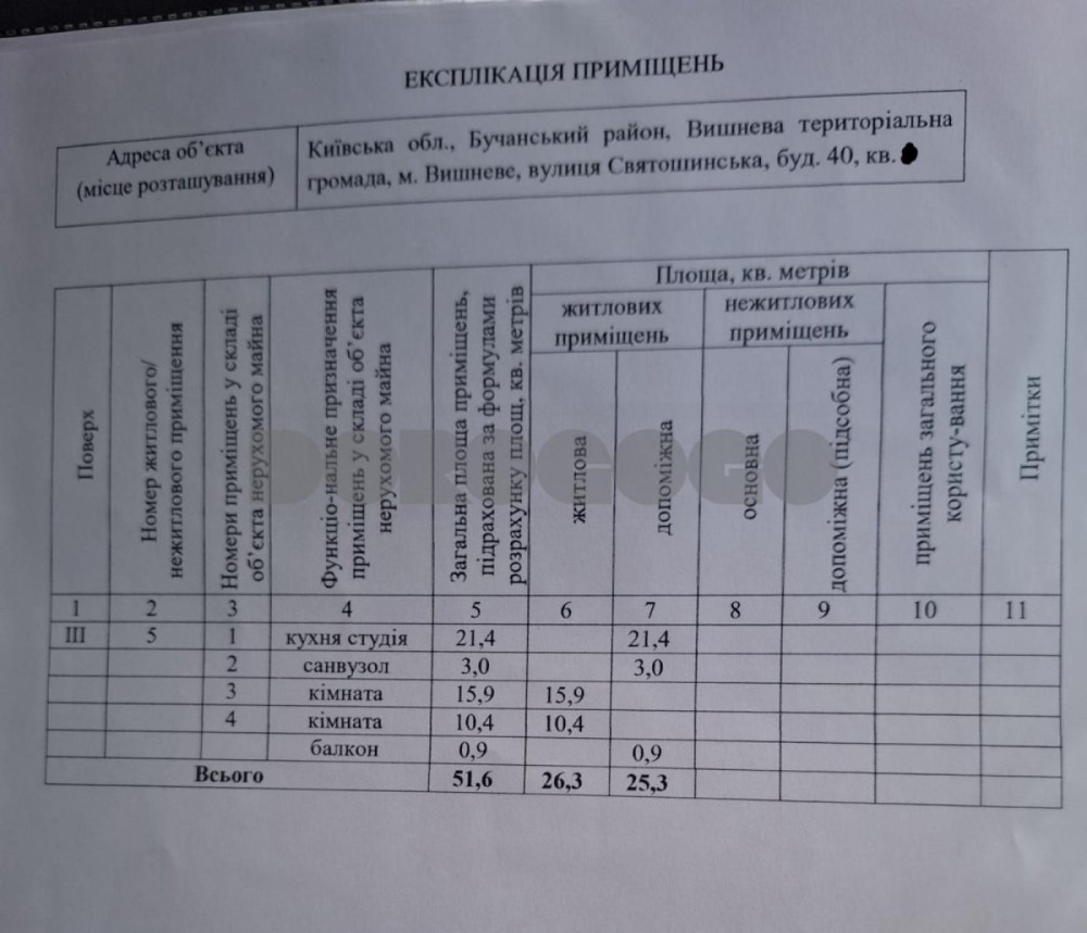 Продаж  2-кім. кв-ри 51.6 м2  по вул. Святошинська, м.Вишневе - фото 1