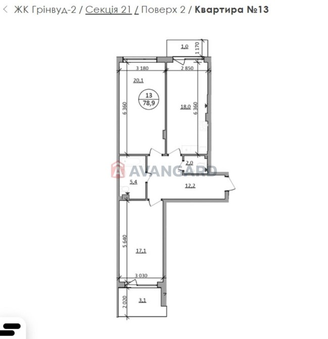 Площа квартири: 78.9 м