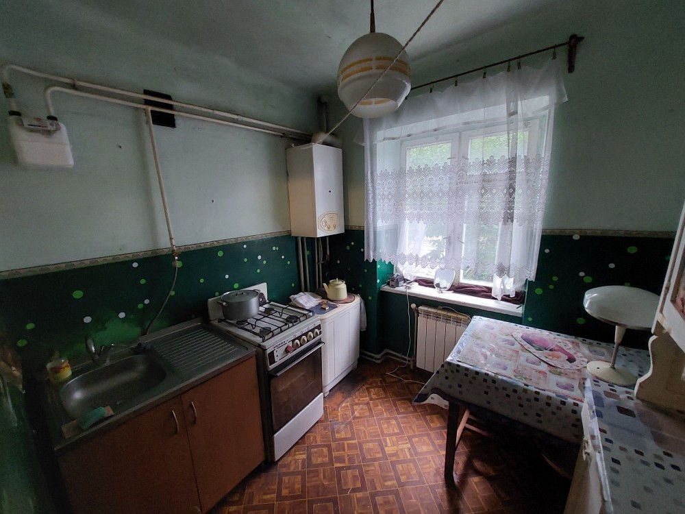 Загальна площа 42,1м2, 1 поверх 4-х поверхового цегляного будинку, кімнати - прохідні площєю 16,2м2 + 10,5м2, сан.вузел - сумістний, опалення - індивідуальне газове ( двохконтурний котел ).