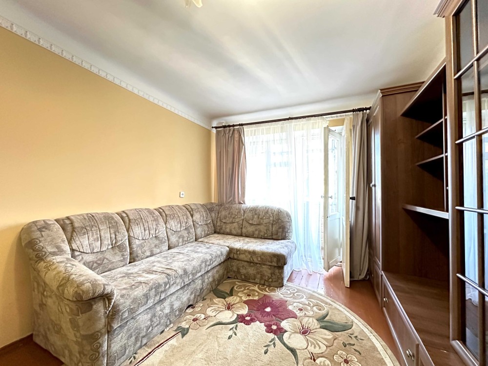 Квартира знаходиться на другому поверсі з пʼяти у цегляному будинку, в житловому стані. В квартирі є дві кімнати: одна прохідна та одна ізольована. Є вихід на балкон, кухня, суміжний санвузол та простора вхідна група. Квартира дуже тепла та світла. Вона є двосторонньою - південно-західна та західна.