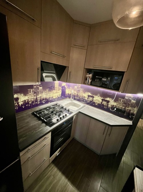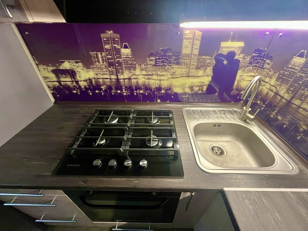 •повністю обладнана кухня: нові вбудовані меблі, нова побутова техніка ( холодильник, плита, витяжка, пральна машина, нова газова колонка-автомат) бренду Samsung; стильна, сучасна стінна робоча площа ( фартух) з підсвітленням;