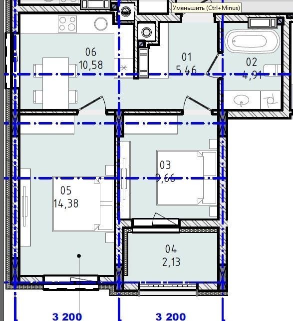 • Трехкомнатная