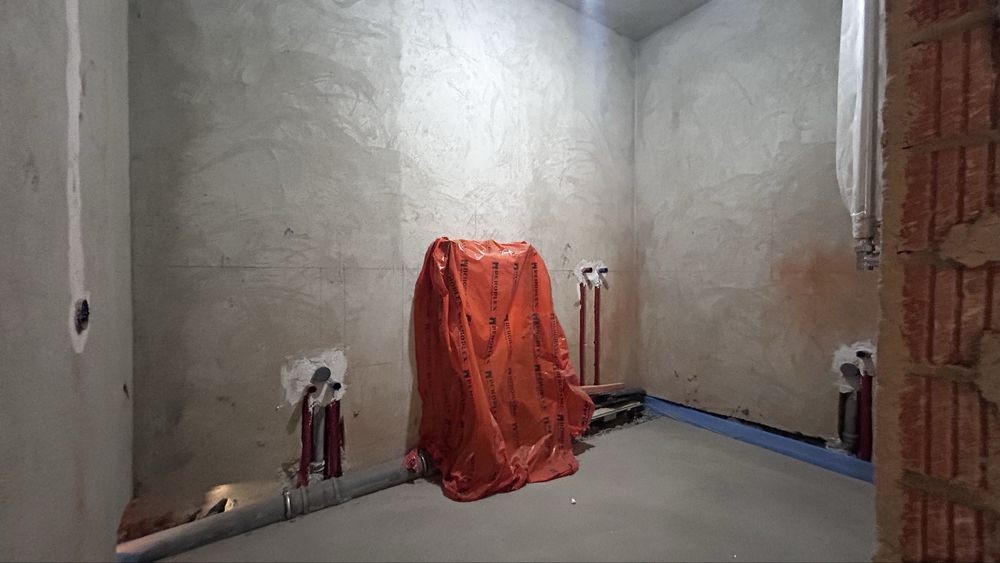 - повністю виконано монтаж каналізаційних труб та комплектуючих для них, залишилося встановити сантехніку