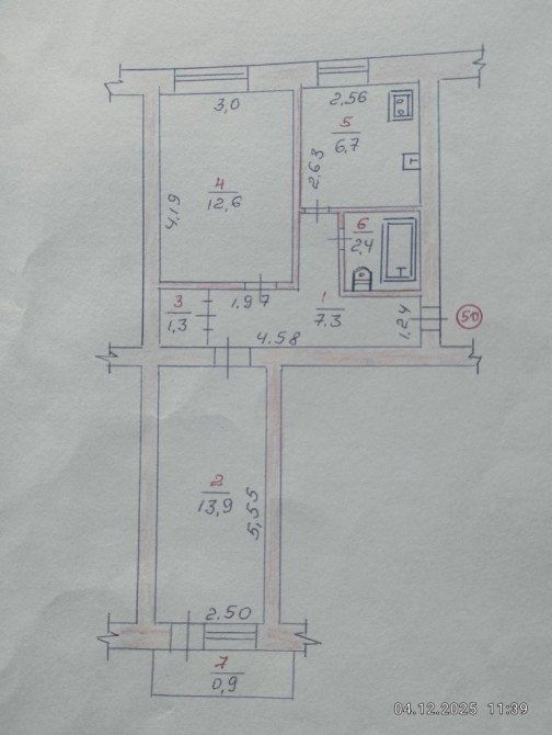 • Площадь кухни 6.7 м2