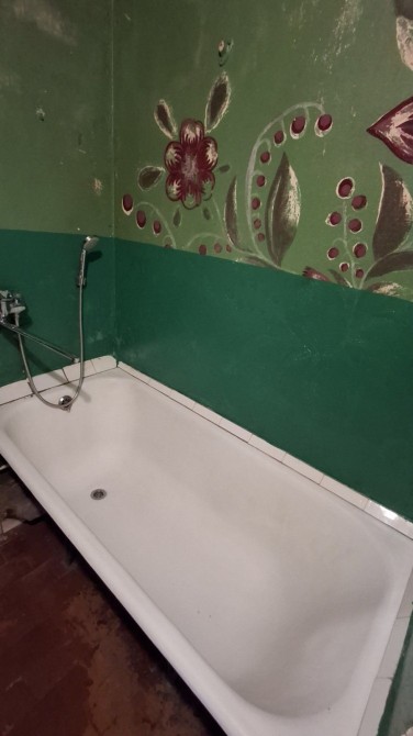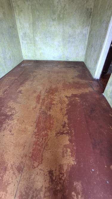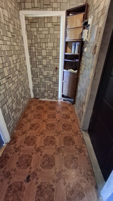 В великій кімнаті і на кухні зняті шпалери під ремонт. На підлозі лінолеум.