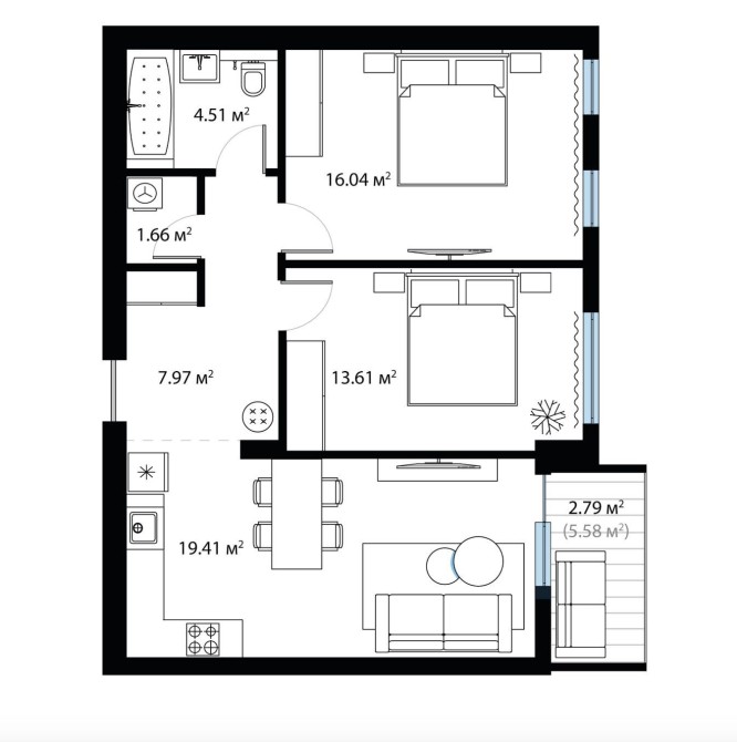 • Двухкомнатная