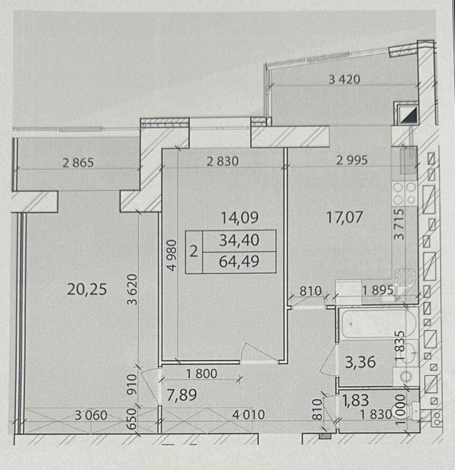 Двокімнатна 65м.кв.