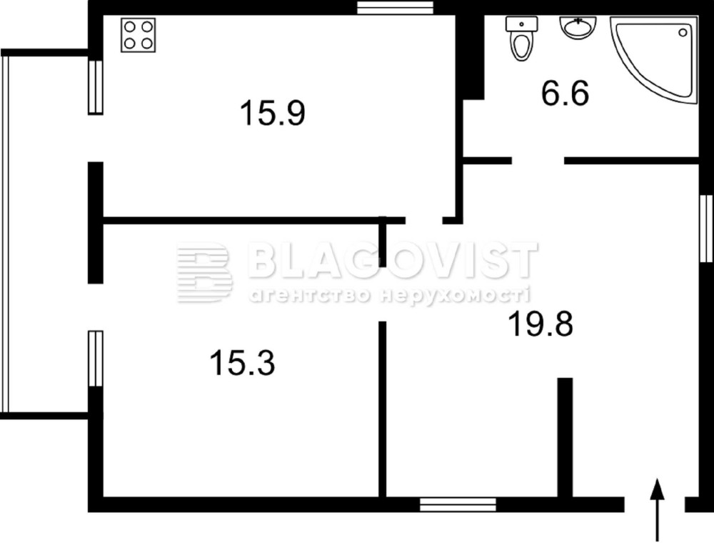 • Площадь кухни 15.9 м2