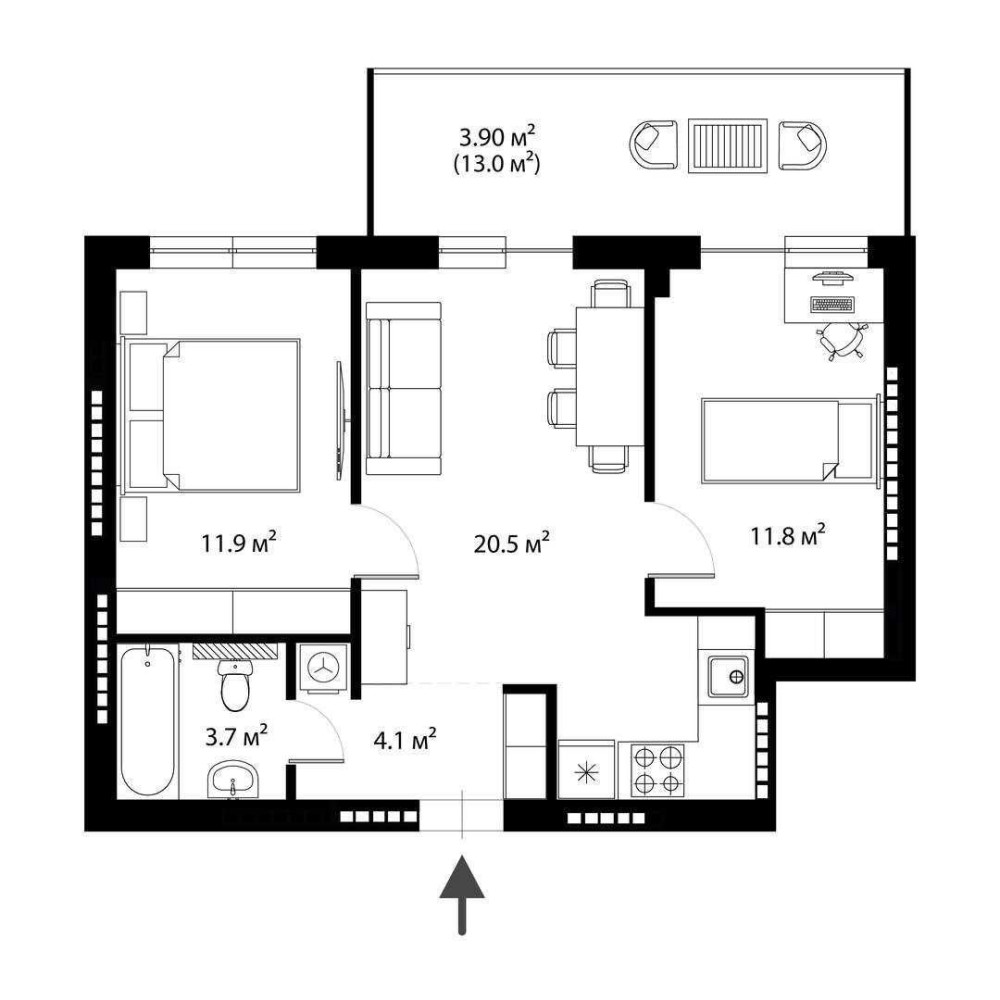 • Общая площадь 55.9 м2