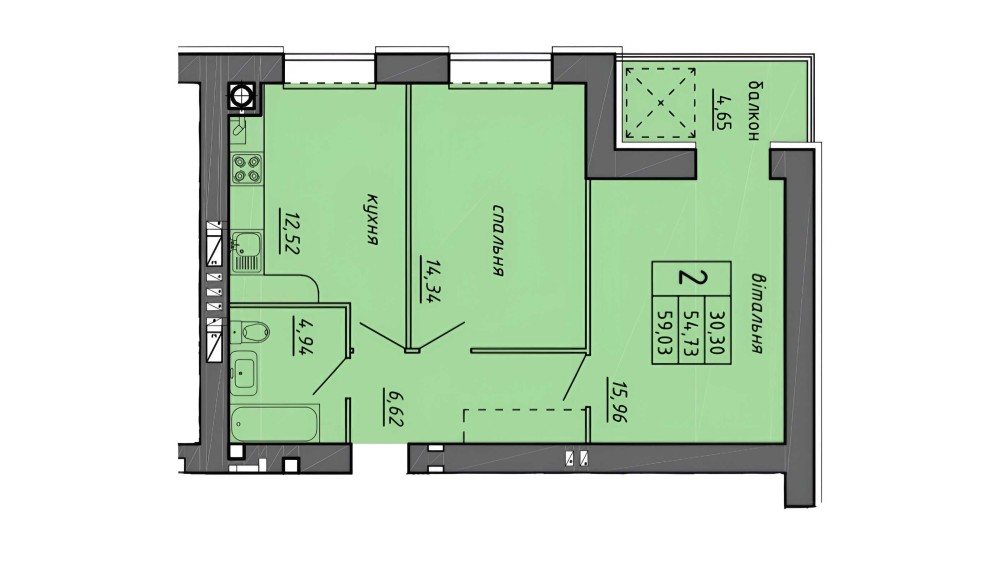 • Общая площадь 59.03 м2